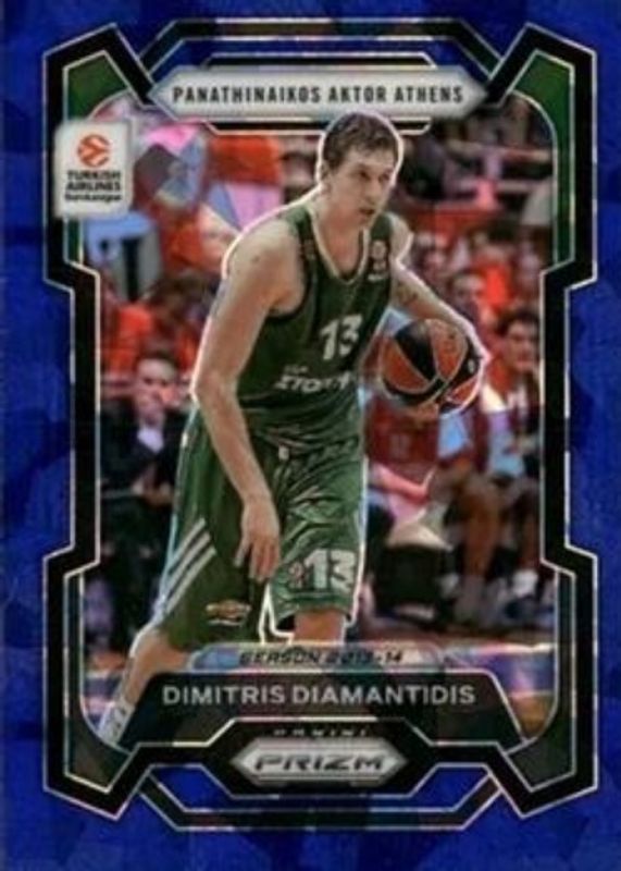 The Dimitris Diamantidis 2023 Prizm EuroLeague #96 Blue Ice /125 card is 1 of 22 Dimitris Diamantidis' card variations in the 2023 Prizm EuroLeague set being tracked by Sports Card Investor, including Base, Basketballs, Green, Ice, and Silver.
