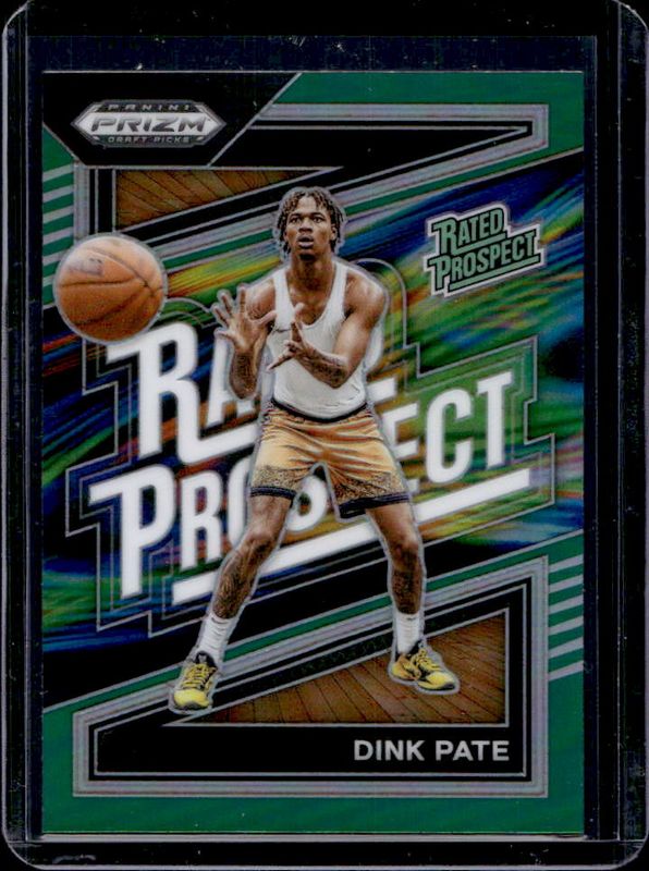 The Dink Pate 2024 Prizm Draft Picks #18 Rated Prospect - Green card is 1 of 49 Dink Pate's card variations in the 2024 Prizm Draft Picks set being tracked by Sports Card Investor, including Rated Prospect, Rated Prospect - Green Wave, Rated Prospect - Hyper, Rated Prospect - Orange Ice, and Rated Prospect - Purple Wave.