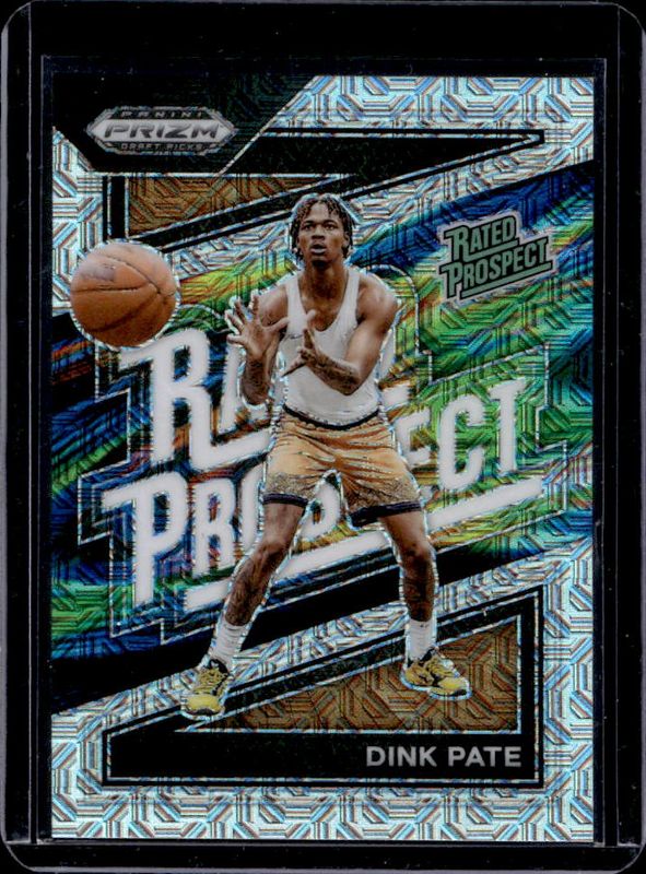 The Dink Pate 2024 Prizm Draft Picks #18 Rated Prospect - Mojo /25 card is 1 of 49 Dink Pate's card variations in the 2024 Prizm Draft Picks set being tracked by Sports Card Investor, including Rated Prospect, Rated Prospect - Green, Rated Prospect - Green Wave, Rated Prospect - Hyper, and Rated Prospect - Orange Ice.