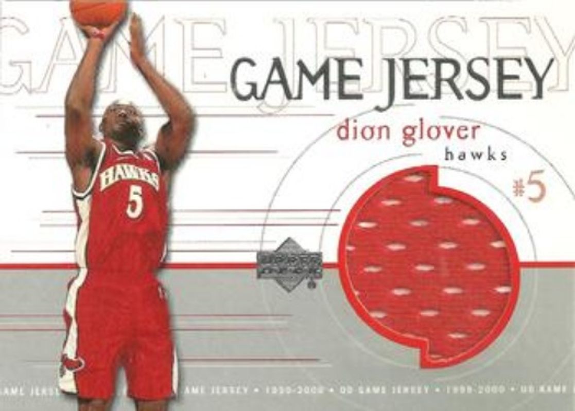The Dion Glover 1999 Upper Deck #GJ30 Game Jerseys Rookie card is 1 of 7 Dion Glover's card variations in the 1999 Upper Deck set being tracked by Sports Card Investor, including #334 Base, #177 Base, #334 UD Exclusives /100, #177 UD Exclusives /100, and #334 Gold /1.