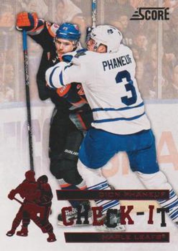 The Dion Phaneuf 2012 Score #C4 Check It card is 1 of 4 Dion Phaneuf's card variations in the 2012 Score set being tracked by Sports Card Investor, including Base, Black Ice, and Gold Rush.