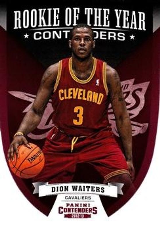 The Dion Waiters 2012 Contenders #6 Rookie of the Year Contenders card is 1 of 6 Dion Waiters' card variations in the 2012 Contenders set being tracked by Sports Card Investor, including Base, Silver /25, Gold /10, Black /1, and Rookie Auto.
