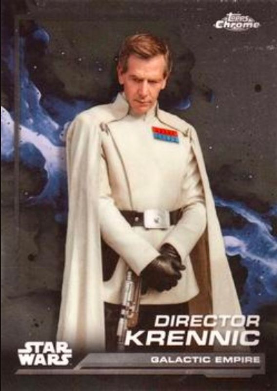 The Director Krennic 2024 Topps Chrome Star Wars #120 Base card is 1 of 31 Director Krennic's card variations in the 2024 Topps Chrome Star Wars set being tracked by Sports Card Investor, including Blue Blaster Pulsar Refractor, Costco Super Box, Costco Super Box Refractor, Rainbow Refractor, and Red Blaster RayWave Refractor.