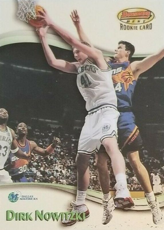 The Dirk Nowitzki 1998 Bowman's Best #109 Base Rookie card in Raw condition has moved up $3.00 (+42.9%) in the last 30 days and was last sold for $9.99 .