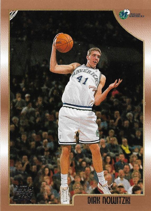 The Dirk Nowitzki 1998 Topps #154 Base Rookie card in Raw condition has moved up $1.26 (+26.4%) in the last 30 days and was last sold for $6.00 .