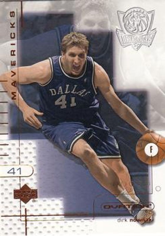 The Dirk Nowitzki 2001 Upper Deck Ovation #18 Base card is 1 of 2 Dirk Nowitzki's card variations in the 2001 Upper Deck Ovation set being tracked by Sports Card Investor, including Superstar Warm Ups.