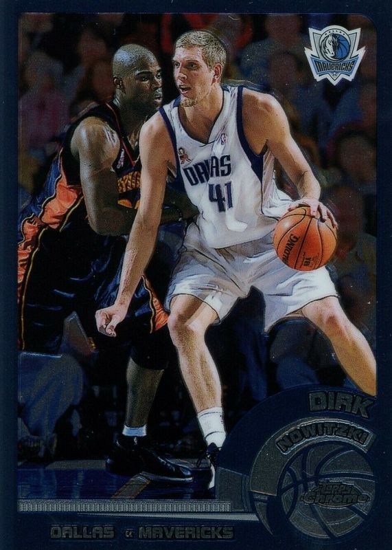 This card is 1 of 4 Dirk Nowitzki's card variations in the 2002 Topps Chrome set being tracked by Sports Card Investor, including Refractor, White Refractor /249, and Black Refractor /99.