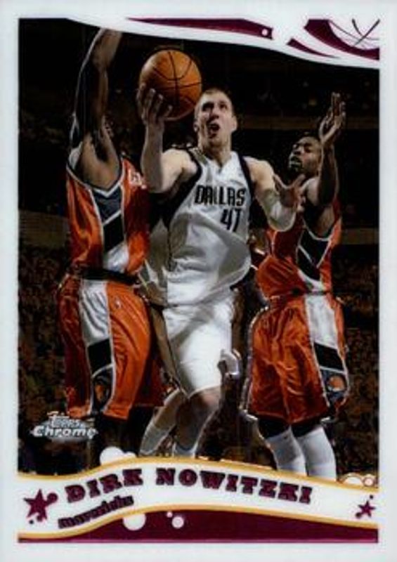 The Dirk Nowitzki 2005 Topps Chrome #72 Base card is 1 of 16 Dirk Nowitzki's card variations in the 2005 Topps Chrome set being tracked by Sports Card Investor, including Refractor /999, Chosen One /400, Premium Performers /400, Black Refractor /399, and Chosen One Relics Refractor /99.