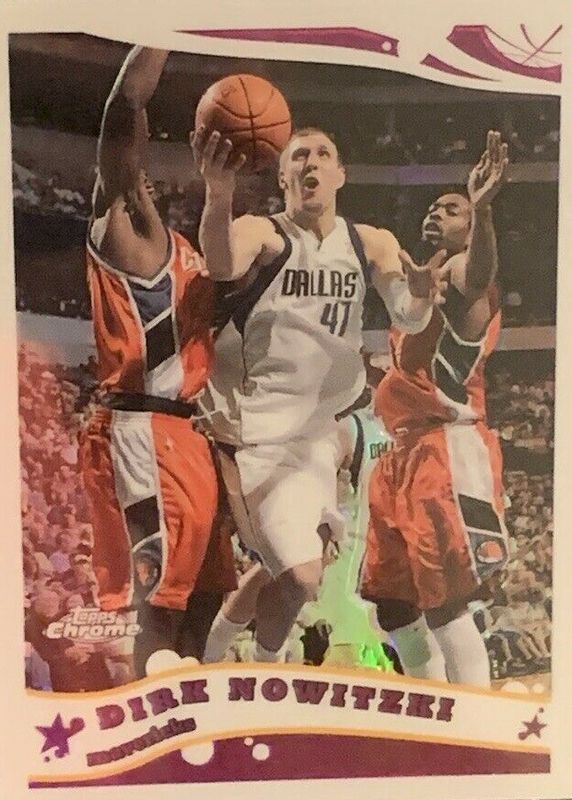 This card is 1 of 16 Dirk Nowitzki's card variations in the 2005 Topps Chrome set being tracked by Sports Card Investor, including Base, Chosen One /400, Premium Performers /400, Black Refractor /399, and Chosen One Relics Refractor /99.
