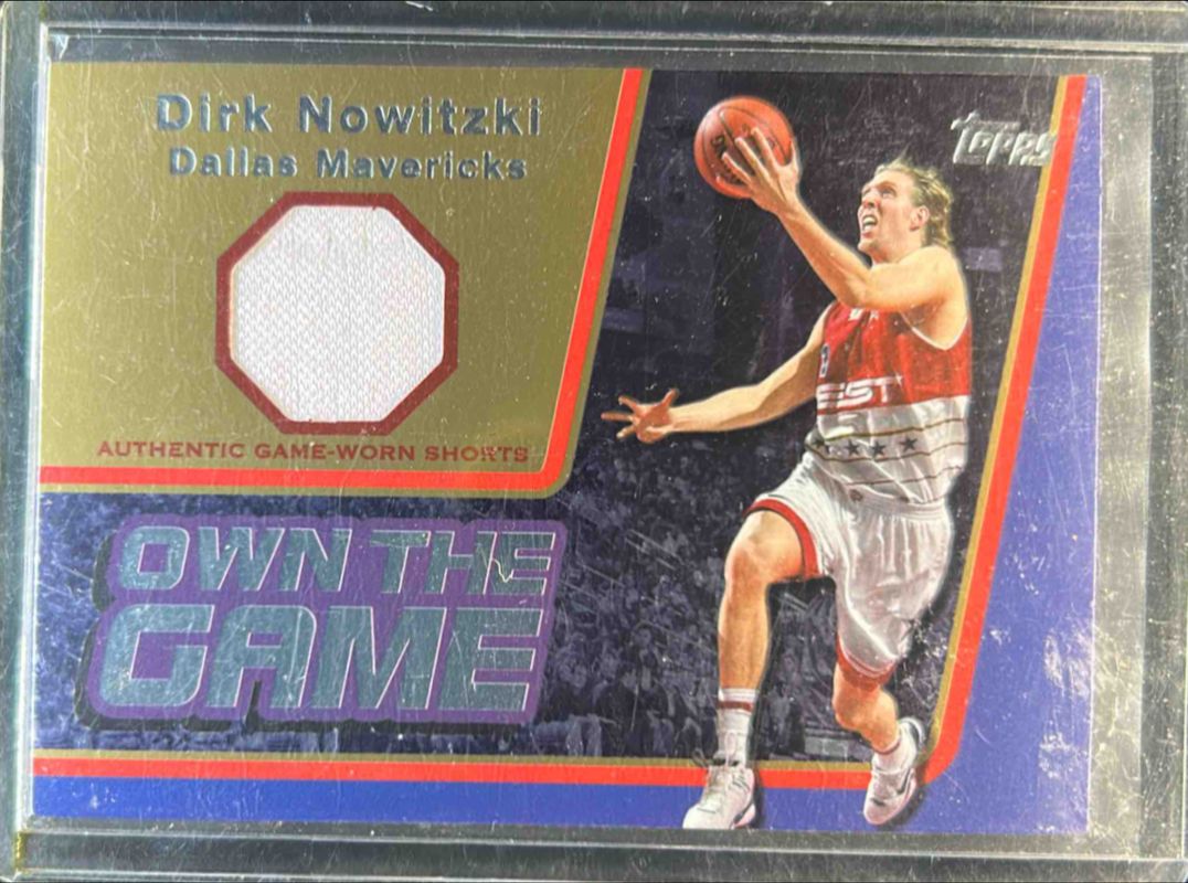 The Dirk Nowitzki 2006 Topps #OTGR-DN Own the Game Relics Gold /25 card is 1 of 13 Dirk Nowitzki's card variations in the 2006 Topps set being tracked by Sports Card Investor, including Base, Gold /500, Black /99, Platinum /1, and 2K7 Promotion.