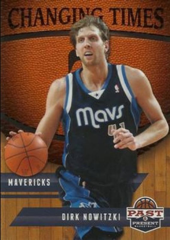 The Dirk Nowitzki 2011 Past & Present #26 Changing Times card is 1 of 9 Dirk Nowitzki's card variations in the 2011 Past & Present set being tracked by Sports Card Investor, including #155 Base, #56 Base, #42 Bread for Health, #7 Fireworks, and #1 Raining 3's.