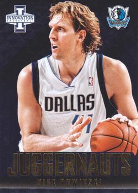 The Dirk Nowitzki 2013 Innovation #27 Juggernauts card is 1 of 16 Dirk Nowitzki's card variations in the 2013 Innovation set being tracked by Sports Card Investor, including Rookie View - Purple, Memorable Memorabilia /299, Rookie View /199, Stat Line Jerseys /125, and Kaboom! /(SSP).