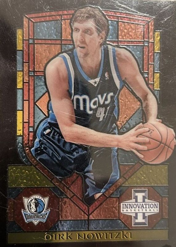 The Dirk Nowitzki 2013 Innovation #71 Stained Glass - Gold /(SSP) card in Raw condition has not changed in price in the last 30 days and was last sold for $362.62 .