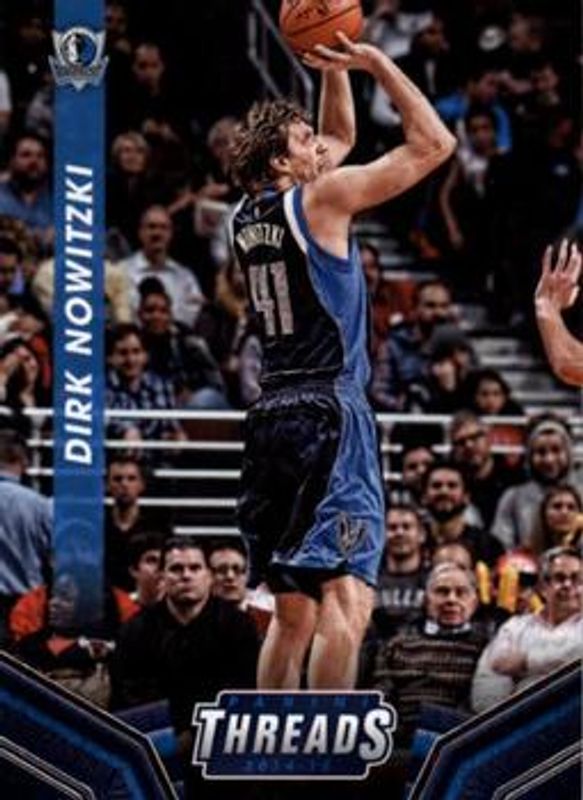 The Dirk Nowitzki 2014 Threads #51 Base card is 1 of 12 Dirk Nowitzki's card variations in the 2014 Threads set being tracked by Sports Card Investor, including Century Proof Red /199, Century Proof Gold /25, Century Proof Platinum /1, Inside Presence, and Team Threads.