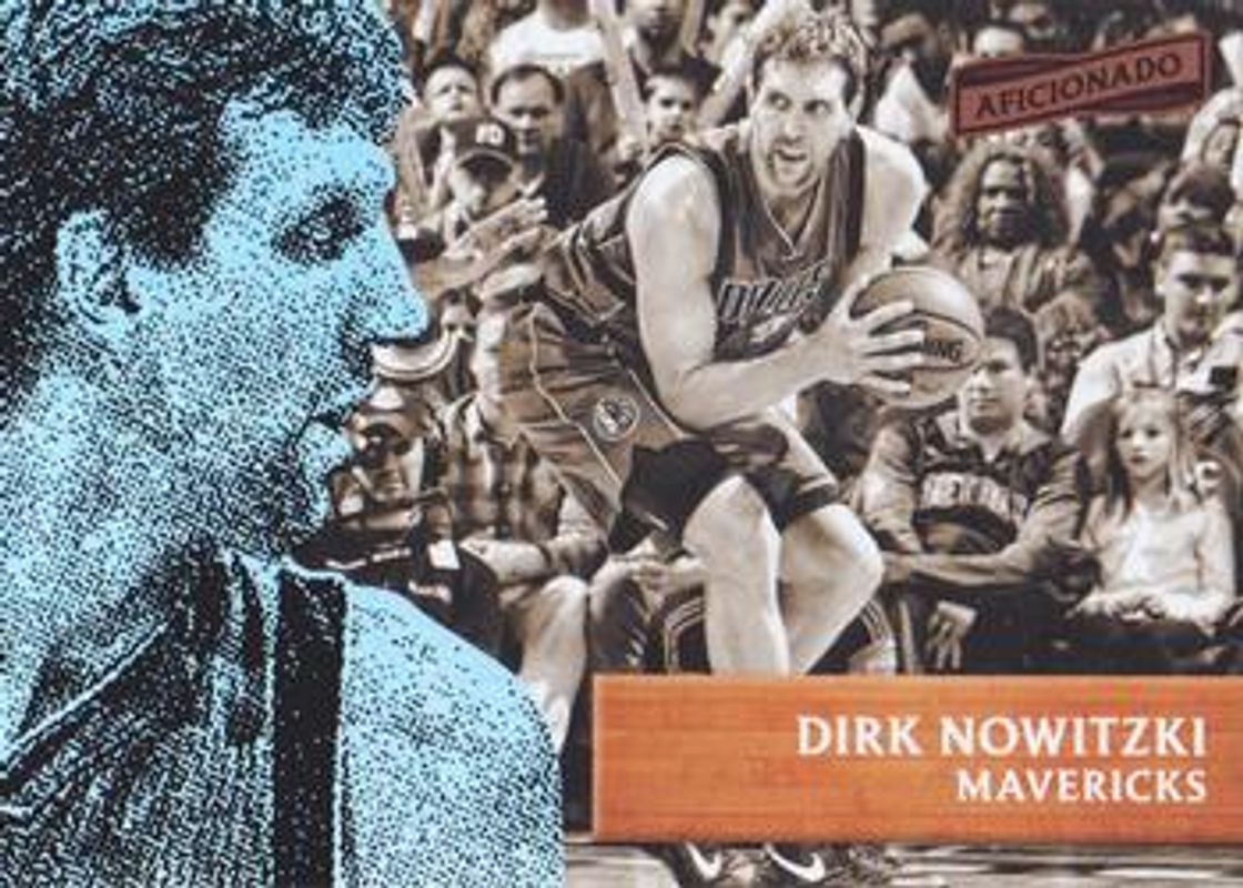 The Dirk Nowitzki 2016 Aficionado #49 Base card is 1 of 24 Dirk Nowitzki's card variations in the 2016 Aficionado set being tracked by Sports Card Investor, including #103 Base, #103 Artist's Proof, #49 Artist's Proof, #49 Opening Night Preview Edition, and #49 Tip Off.