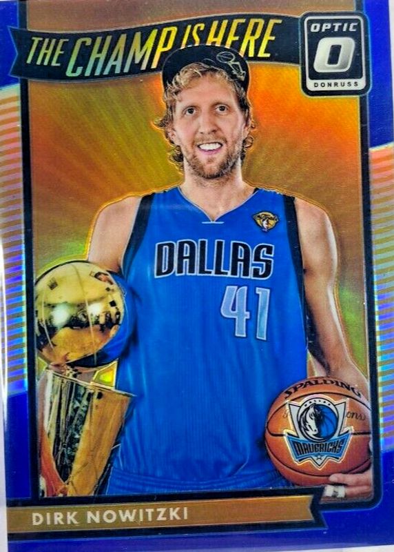 Dirk Nowitzki 2016-17 Donruss Optic The Champ Is Here Blue Holo Prizm /49