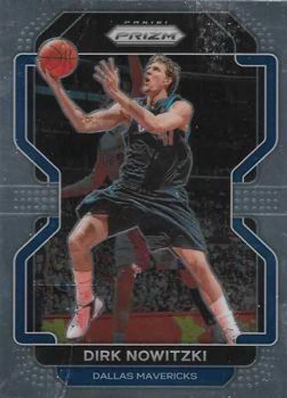 The Dirk Nowitzki 2021 Prizm #289 Base card is 1 of 62 Dirk Nowitzki's card variations in the 2021 Prizm set being tracked by Sports Card Investor, including Blue NBA 75th Anniversary, Blue Wave, Choice Blue Yellow Green, Factory Set Blue Hyper, and Factory Set Green Hyper.