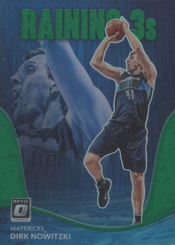 Auctions Ending Soon for Dirk Nowitzki 2022 Optic #19 Raining 3s - Green /5 RAW