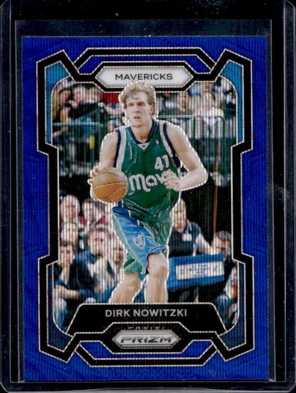 The Dirk Nowitzki 2023 Prizm #187 Blue Wave card is 1 of 66 Dirk Nowitzki's card variations in the 2023 Prizm set being tracked by Sports Card Investor, including Base, Choice Blue Yellow Green, Fast Break, Green, and Green Ice.