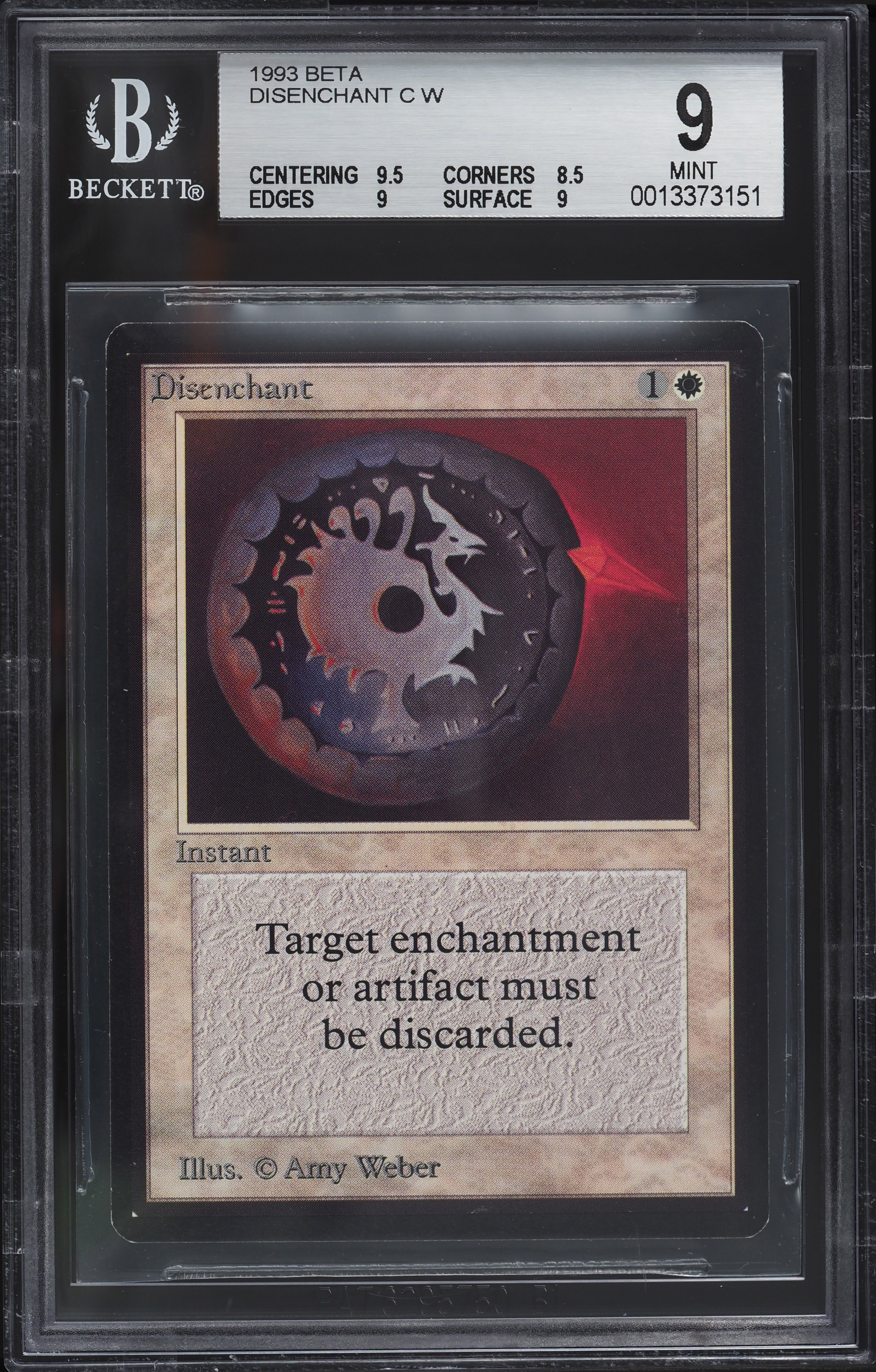 The Disenchant 1993 Beta Edition Base card in Raw condition has moved down -$3.63 (-10.4%) in the last 30 days and was last sold for $31.25 .