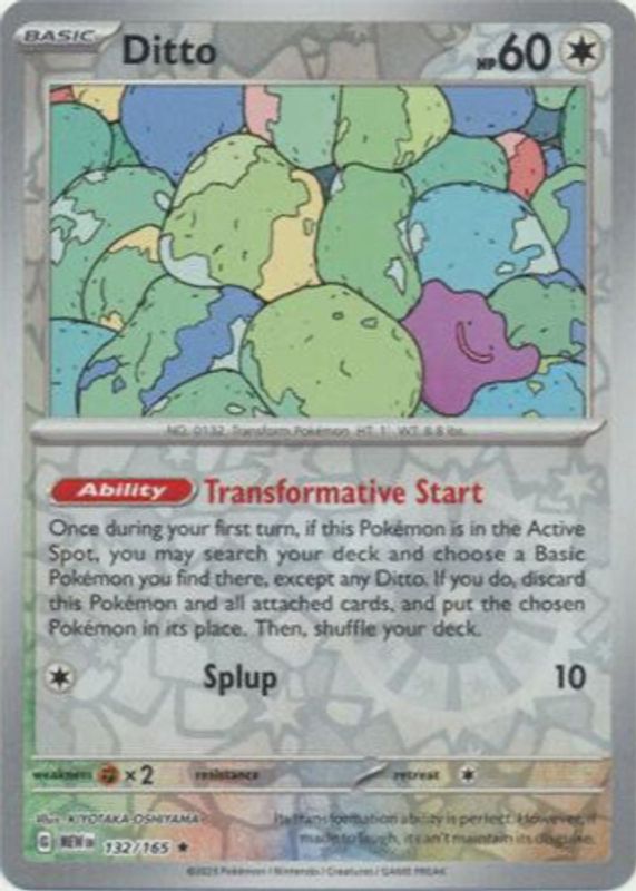 The Ditto 2023 Scarlet & Violet: 151 #132/165 Reverse Holo card in Raw TCG (Near Mint) condition has moved up $0.10 (+4.2%) in the last 30 days and was last sold for $2.49 .