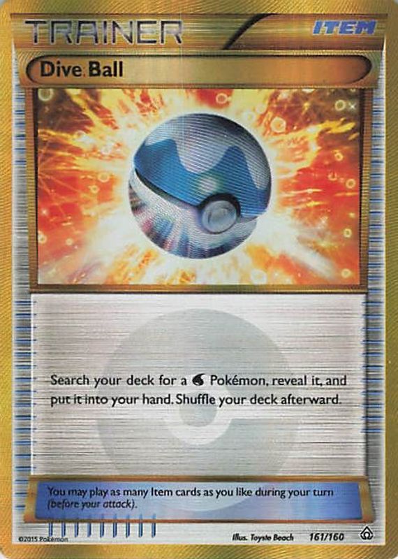The Dive Ball 2015 XY: Primal Clash #161/160 Holo (Secret) card in Raw TCG (Moderately Played) condition has not changed in price in the last 30 days and was last sold for $11.91 .