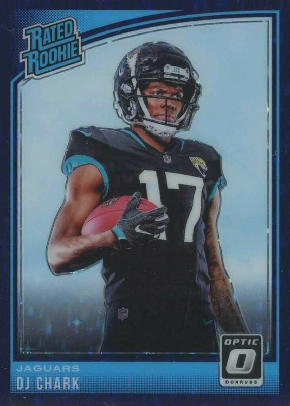 The DJ Chark Jr. 2018 Optic #165 Purple Stars /25 Rookie card in Raw condition has not changed in price in the last 30 days and was last sold for $14.05 .