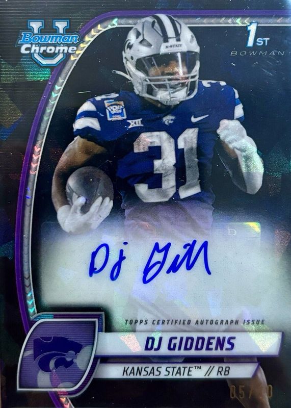 2024 Bowman Chrome University Sapphire DJ Giddens Black Auto #05/10 Kansas State