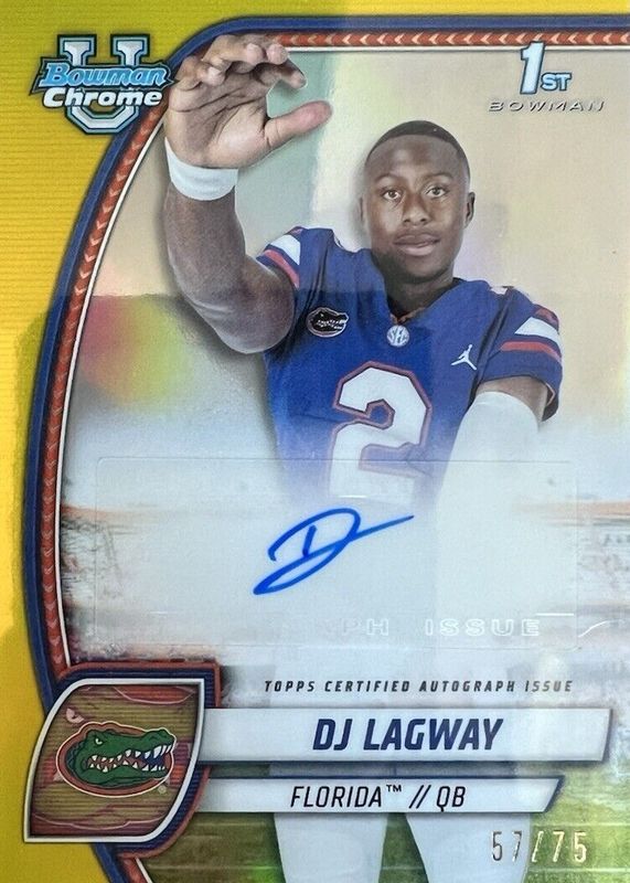 2024 Bowman Chrome University DJ Lagway Auto /75 Yellow Refractor Florida Gators