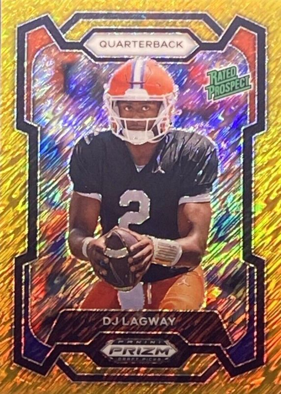 This card is 1 of 82 DJ Lagway's card variations in the 2024 Prizm Draft Picks set being tracked by Sports Card Investor, including Base, Green, Purple Wave, Red Ice, and Ruby Wave.