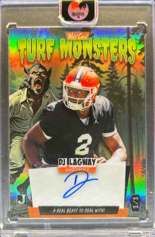 DJ Lagway 2024 Wild Card Haunted Hits #ATMWMDL Turf Monster Wolfman Rainbow Orange /1 RAW Price Guide