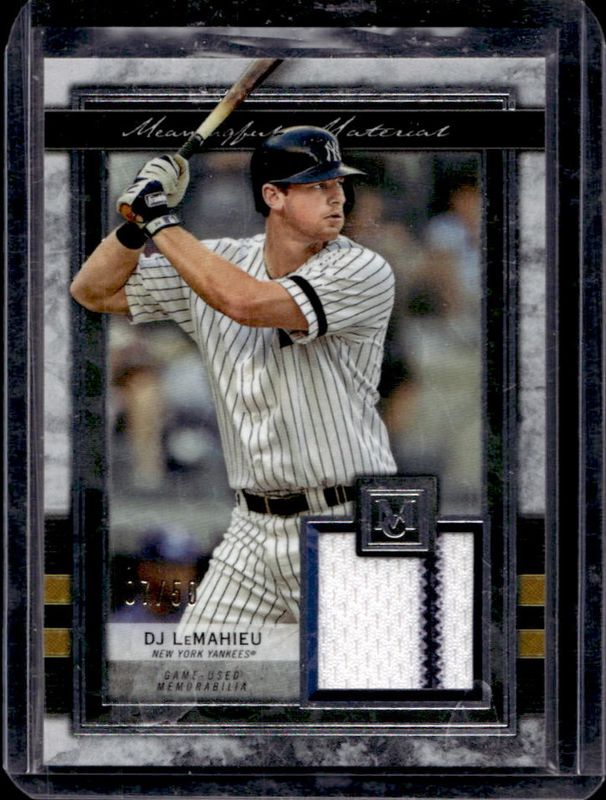 The DJ LeMahieu 2020 Topps Museum Collection #MMR-DJL Meaningful Material Relics /50 card is 1 of 24 DJ LeMahieu's card variations in the 2020 Topps Museum Collection set being tracked by Sports Card Investor, including Archival Autographs /299, Single-Player Signatures Swatches Dual Relic Autographs /299, Single-Player Primary Pieces Quad Relics /99, Single-Player Primary Pieces Quad Relics - Copper /75, and Archival Autographs - Copper /50.