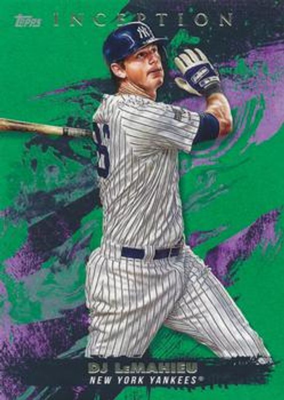 The DJ LeMahieu 2021 Topps Inception #34 Green card is 1 of 13 DJ LeMahieu's card variations in the 2021 Topps Inception set being tracked by Sports Card Investor, including Base, Purple /150, Magenta /99, Red /75, and Orange /50.