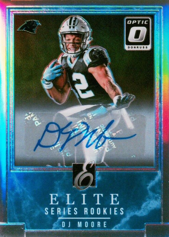 The DJ Moore 2018 Optic #RES-DM Rookie Elite Series Autographs (/15) card in Raw condition has not changed in price in the last 30 days and was last sold for $26.01 .