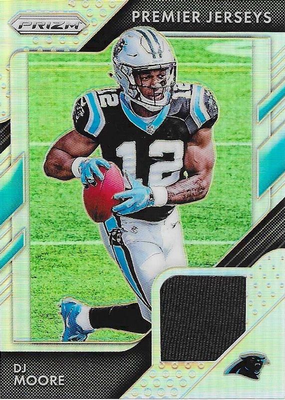 The DJ Moore 2018 Prizm #PP-7 Premier Jerseys Rookie card in Raw condition has not changed in price in the last 30 days and was last sold for $5.75 .