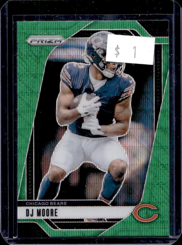 The DJ Moore 2024 Prizm #48 Green Wave card is 1 of 100 DJ Moore's card variations in the 2024 Prizm set being tracked by Sports Card Investor, including Base, Choice Blue Yellow Green, Choice Silver, Disco, and Green.