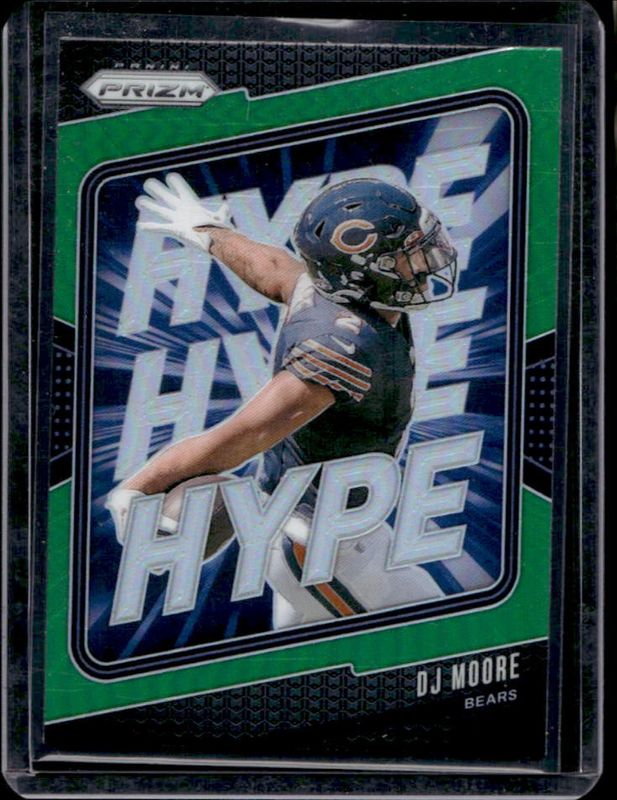 The DJ Moore 2024 Prizm #15 Hype - Green card is 1 of 100 DJ Moore's card variations in the 2024 Prizm set being tracked by Sports Card Investor, including Base, Choice Blue Yellow Green, Choice Silver, Disco, and Green.