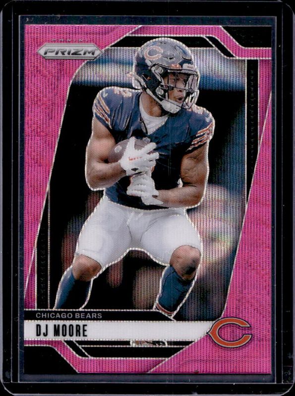The DJ Moore 2024 Prizm #48 Pink Wave card is 1 of 100 DJ Moore's card variations in the 2024 Prizm set being tracked by Sports Card Investor, including Base, Choice Blue Yellow Green, Choice Silver, Disco, and Green.