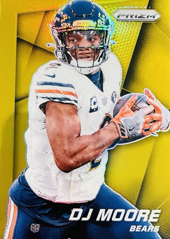 The DJ Moore 2024 Prizm #9 Prizm Flashback - Gold /10 card in Raw condition has not changed in price in the last 30 days and was last sold for $37.00 .