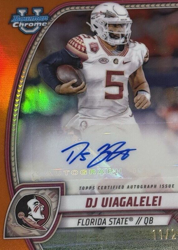 2024 Bowman University Chrome DJ Uiagalelei Orange Refractor Auto /25 FSU