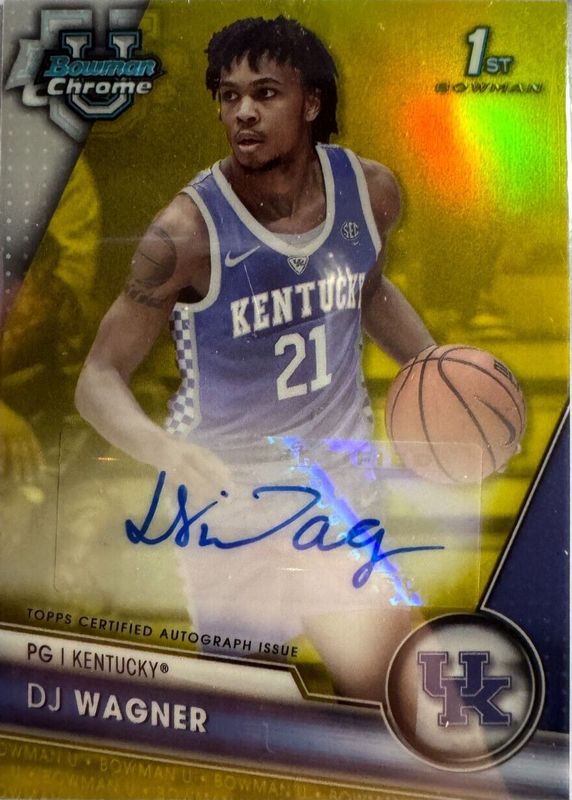 DJ Wagner 2023 Bowman Chrome University #BCPA-DW Prospect Auto - Yellow Refractor /75 (1st) RAW Price Guide
