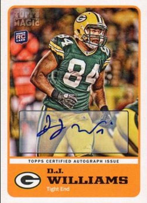 The DJ Williams 2011 Topps Magic Rookies #82 Autographs card is 1 of 3 DJ Williams' card variations in the 2011 Topps Magic Rookies set being tracked by Sports Card Investor, including Base, and Autographs - Black Border /1.