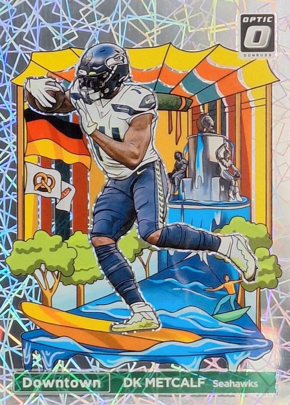 DK Metcalf's Football cards are available in at least 88 sets. DK Metcalf's biggest 7-day price movers are 2023 Optic #5 International Downtown /(SSP), 2021 Optic #DT-32 Downtown /(SSP), and 2024 Donruss #25 Unleashed - Gold /10.
