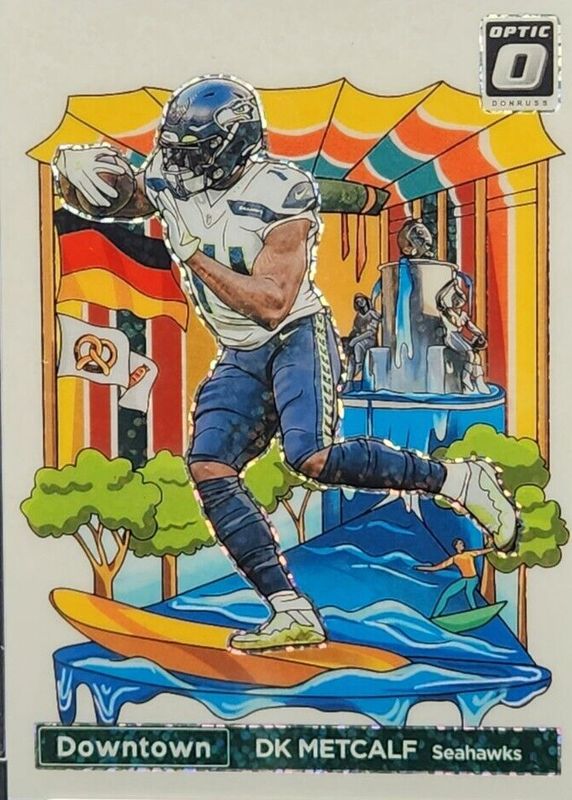 This card is 1 of 15 DK Metcalf's card variations in the 2023 Optic set being tracked by Sports Card Investor, including Blazers /(SSP), International Downtown /(SSP), Blazers - Black Pandora /25, International Downtown - Black Pandora /25, and My House - Black Pandora /25.