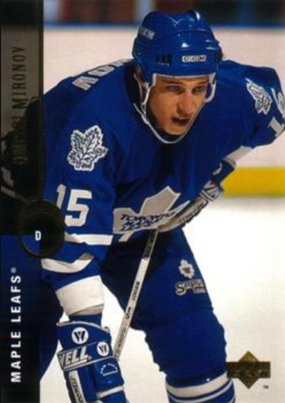 The Dmitri Mironov 1994 Upper Deck #222 Base card is 1 of 4 Dmitri Mironov's card variations in the 1994 Upper Deck set being tracked by Sports Card Investor, including Electric Ice, SP, and SP die-cut.