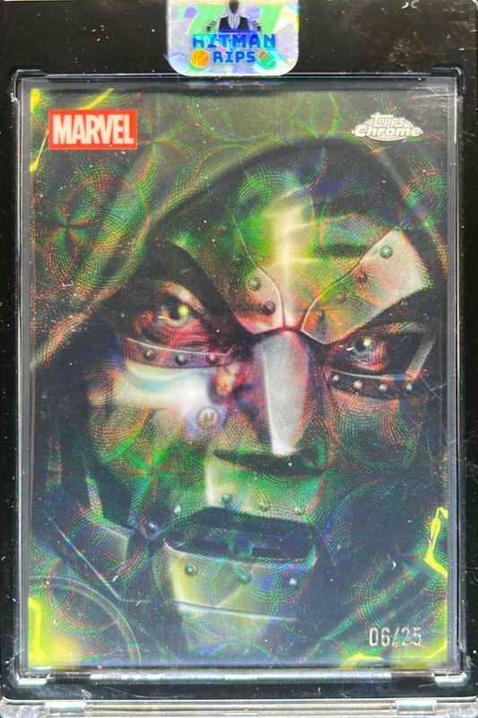 The Doctor Doom 2025 Topps Chrome #MR-1 Marvel Reflections - Kaleidoscope /25 card is 1 of 35 Doctor Doom's card variations in the 2025 Topps Chrome set being tracked by Sports Card Investor, including Base, Refractor, Yellow Lava Refractor, Spider Web Refractor /399, and Blue Refractor /299.