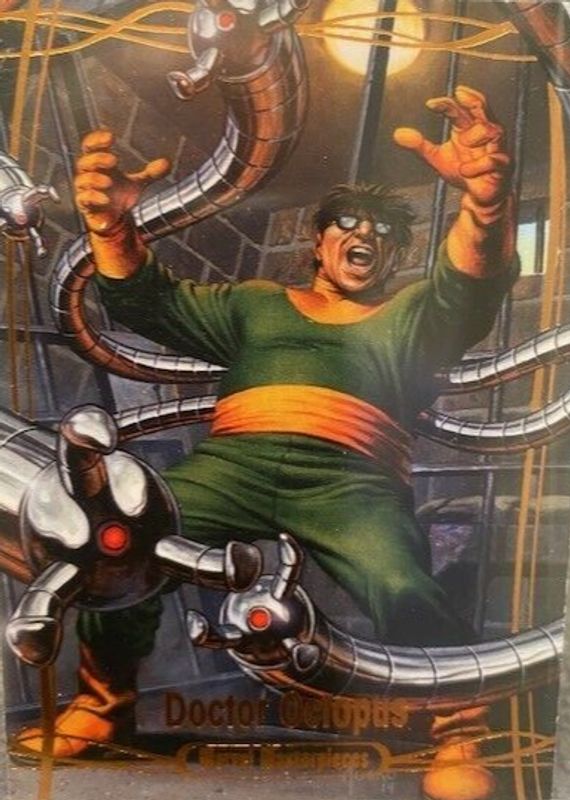 This card is 1 of 3 Doctor Octopus' card variations in the 2016 Upper Deck Marvel Masterpieces set being tracked by Sports Card Investor, including Base (/1499), and Epic Purple Foil /199.