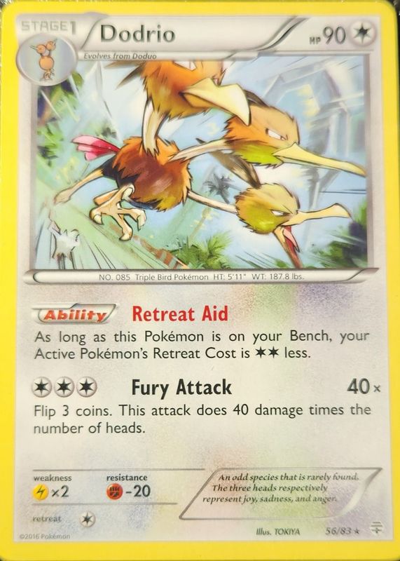 The Dodrio 2016 XY: Generations #56/83 Base card in Raw TCG (Lightly Played) condition has moved up $1.95 (+188%) in the last 30 days and was last sold for $2.99 .