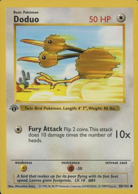 Pokémon TCG - DODUO - 48/102 - 1ST EDITION/SHADOWLESS - BASE SET (1999) - LP