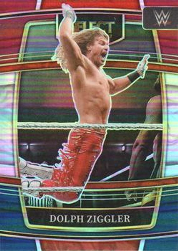 The Dolph Ziggler 2022 Select WWE #67 Red & Blue card is 1 of 56 Dolph Ziggler's card variations in the 2022 Select WWE set being tracked by Sports Card Investor, including #67 Base, #161 Base, #67 Elephant, #161 Elephant, and #67 Orange Flash.